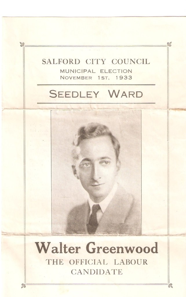 I think it is likely to date to the years 1933 to 1934 because it shows Greenwood without the moustache which he seems to have adopted in 1935 (and never thereafter abandoned). It also closely resembles the photograph in his 1933 Salford council election leaflet (he was not elected that time, but was when he stood for another Salford ward in 1934).