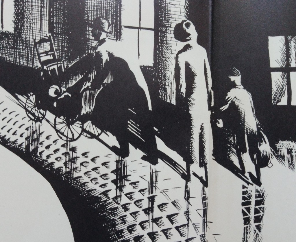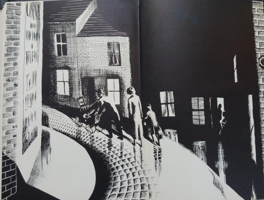 Greenwood’s prose here prefigures the deadpan style he applied to his memoir There was a Time some thirty-three years later in 1967. His parents clearly have many emotions about what has happened to them but only their external postures are described, without explicit attempt at interpretation. An ’emergency’ is presumably how Tom Greenwood would have seen the situation – something which had occurred quite unexpectedly and without warning – hence his expression of dignity (yet as the ‘usually’ indicates it is not actually that unprecedented a situation for him). So too, Walter’s own memories are confined to visual images he cannot forget – the wet streets, his parents’ silhouettes in the dark – without overt expression of subjective feeling either at the time or in retrospect. The reader must imagine what all the parties felt.