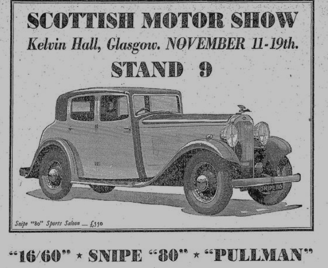 A quite widely circulated unsigned newspaper article from 1932 suggested that under the current economic troubles even the wealthy were likely to be less confident about buying the kinds of ‘£400 – £500’ luxury vehicles they used to and that many were turning to smaller luxury cars such as those successfully being marketed by Triumph as ‘economy luxury cars’ (published for example by the Lytham Times, January 29, 1932, p.7, and one can’t help but think sponsored by Triumph in some way). There were examples of these brand-new ‘Triumph Luxury Saloons’ on the market that year for sale at £165 (the list price given by the periodical John Bull in the course of advertising a competition for which a free Triumph was the prize, 2 July 1932, p. 36). Clearly, however, the recession has not driven Mrs Babson to such personal economies and the car Hector recommends must be more like the larger luxury saloons which were certainly still available for the wealthy. Hector might have suggested something like those luxury saloons at around the £500 mark noted at the Scottish Motor Show – the Scotsman motoring correspondent wrote that there were ‘limousine models’ offering excellent value and quality offered by ‘Austin, Armstrong-Siddeley, Daimler, Humber Talbot and Wolseley’ (16 November, 1932, p.7). At the head of the page was indeed an advert for the Humber Snipe 80 giving a price of exactly £550.