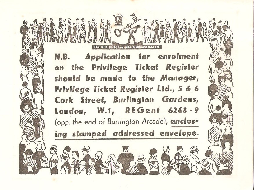 The ‘Privilege Ticket Register’ was a scheme which the Stage first notedas an item of financial news on the ninth of August 1934 (p.9). It was not enthusiastic: