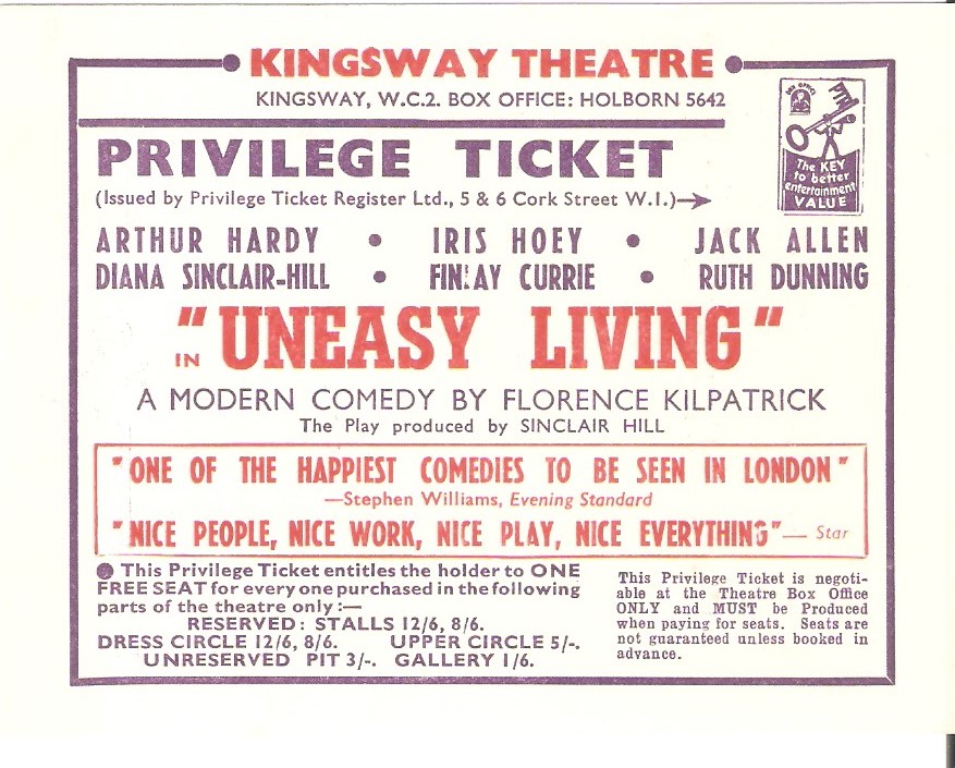 Despite the Stage’s carefully justified dislike and distaste, the PTR scheme was still in business until at least 1939, when it issued Privilege tickets for Uneasy Living (in May) and The Desert Song (June).