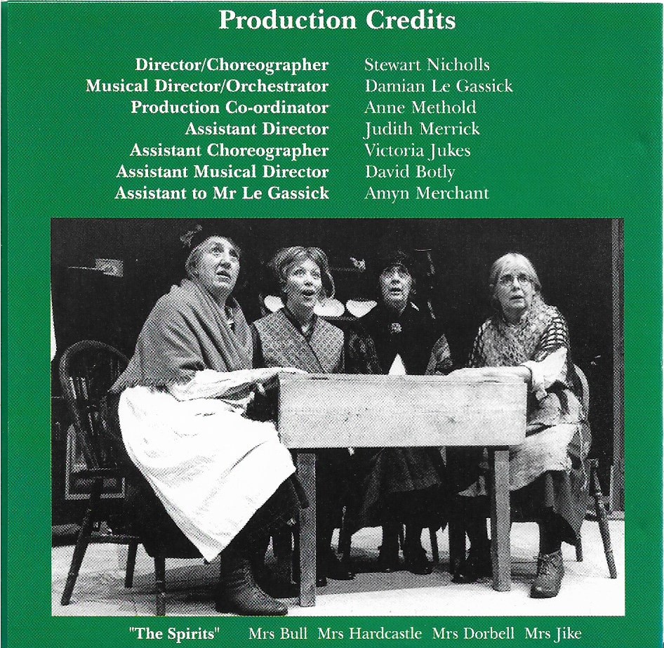 I ought to say that the 1995 revival – the only one we have in something relatively close to a record of a full performance – was not identical to the 1970 production, as Stewart Nicholls tells us in the CD booklet: ‘ [it had] much revision, some new songs and new orchestration’ (the music for the new songs was though still composed by Alan Fluck). Some of the variations in the numbers can be seen from the original Nottingham programme which on its fourth page listed the numbers in the original show. Some numbers from Nottingham are not in the Woking revival (or not on the CD version anyway), including ‘What is There to See at the Seaside?, and two dance numbers ‘Up on the Moors’ and ‘Clogging’. This may be because insufficient dancers were available – the dance numbers had received considerable praise in the original Nottingham show: