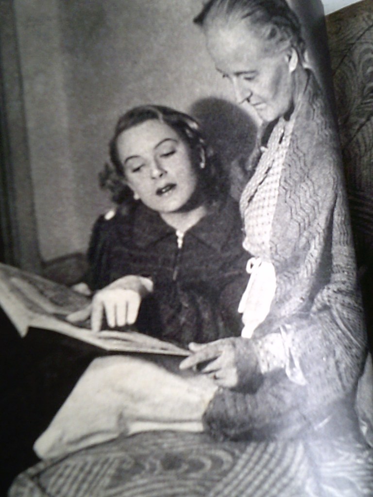 The second photograph focuses again on her ordinariness, and also on her relative inexperience in the world of acting. She only has a brief professional history (though it has some variety) and it is recorded in that then common repository for memories, her photograph album. The other person in this photo who she is sharing her memories with is the actress Mary Merrall, who played Mrs Hardcastle in the film of Love on the Dole. Merrall had first appeared on stage in 1907, though she was a newcomer to film herself (see: Mary Merrall – Wikipedia). She appears in this image as a motherly figure perhaps, echoing her role in Greenwood’s story, and suggesting a down-to-earth and kind mentoring relationship with her younger colleague. The image is redolent of a homely atmosphere on set and of the modesty of an actress who has just been given a key role.