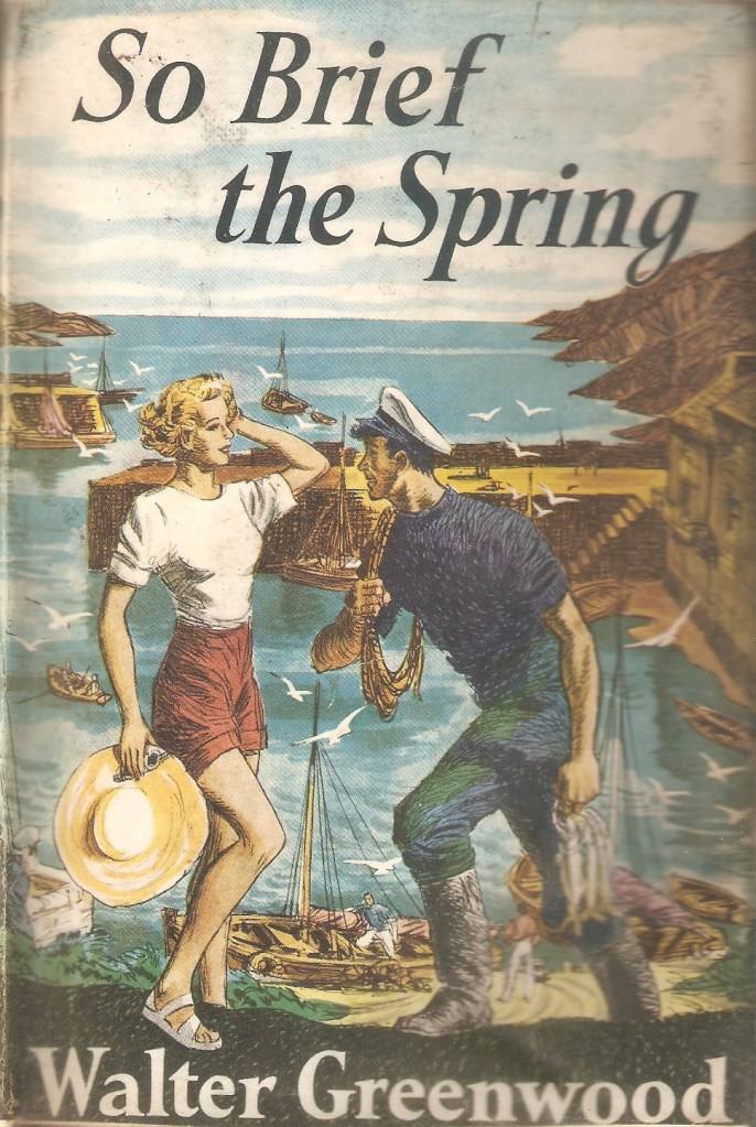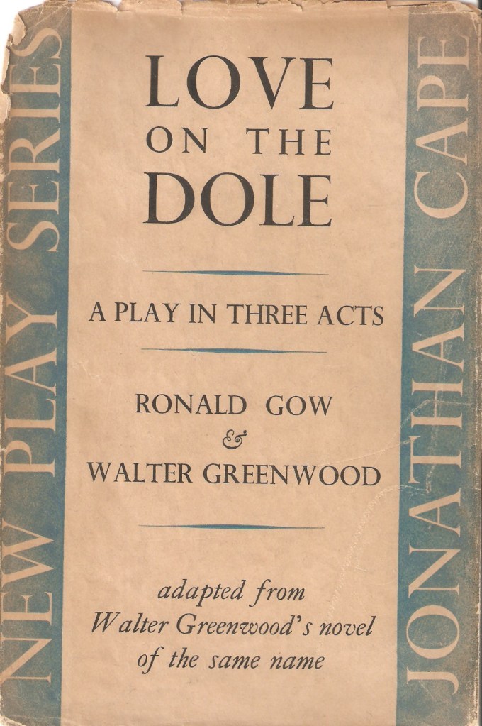 This page gives a quick overview of all Greenwood’s published works by reproducing the first edition dust wrappers of each of his published novels, plays, and non-fiction texts. Some of his plays were performed but not published, so these are not represented here, and likewise a number of works in draft which did not make it to publication. Those pieces of writing apart, the page offers a visual guide to the complete works of a working-class writer who is mainly remembered for a single (if very influential) novel published when he was thirty years old. As many of these covers make clear, Love on the Dole was what made his name, but it did not exhaust all his creative energy, and his subsequent publications kept him and the issues he raised in his first novel about poverty and unemployment, as well as new issues about British society, in the public mind for a further thirty-four years just during his own lifetime. All of the dust wrappers or cover designs reproduced here are scanned or photographed from copies in the author’s collection. I have kept commentary to a minimum so that readers can gain a swift overview of Greenwood’s oeuvre as represented by his dust wrapper and cover designers (I think he was generally very fortunate with his illustrators). For a detailed discussion of how cover designs relate to the contents of these books, as well as images of subsequent editions and translations, see: Walter Greenwood’s Dust-Wrappers and Covers 1933 to the present
