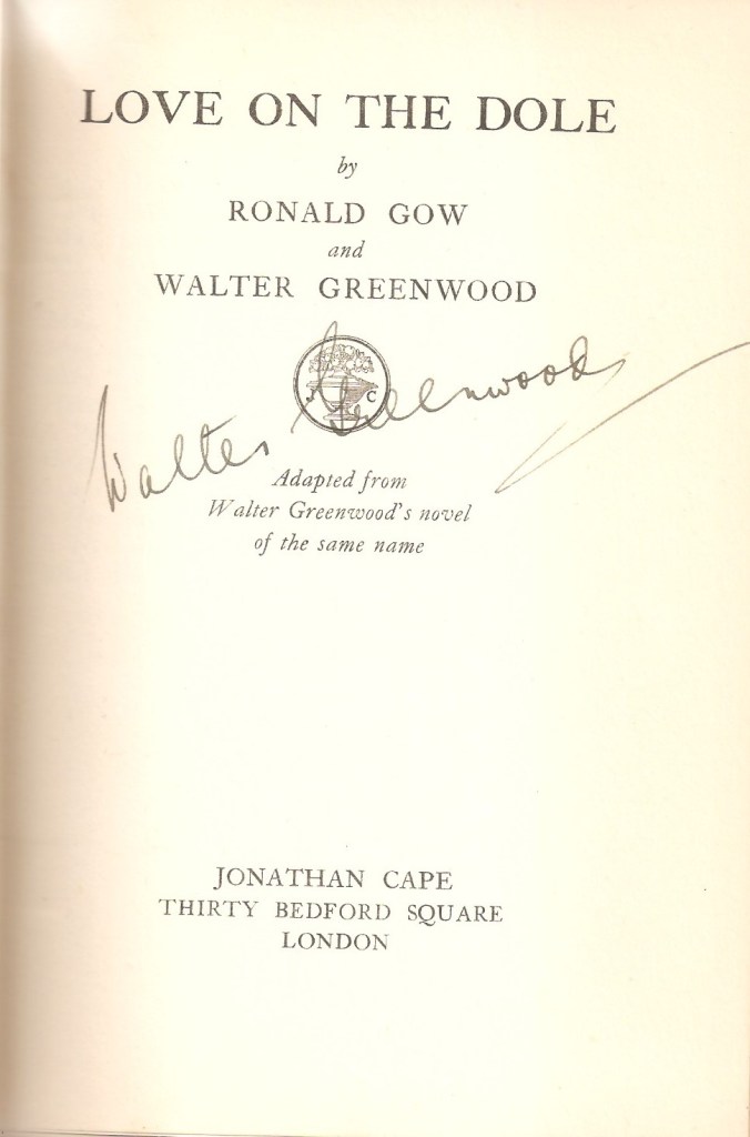 While Gow may have been over-modest about his career as a school-teacher, the same might not be true of his claims about his contribution to the play of Love on the Dole. While it is true that it was Gow who approached Greenwood to suggest working together on a stage adaptation of Love on the Dole, he represents himself here as the sole author and adapter of Greenwood’s best-selling novel, with no active role for Greenwood in writing the play (a view echoed uncritically in his Wikipedia entry which asserts that ‘he wrote Love on the Dole based on Walter Greenwood’s novel’). (9) The play has however always been produced and printed with a joint attribution thus: