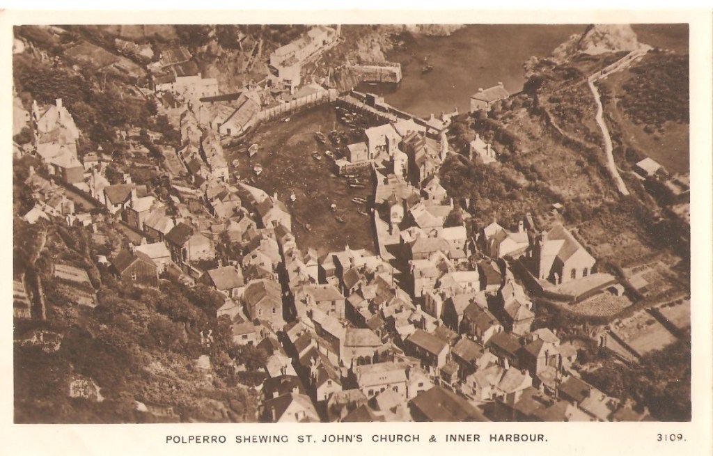 Note 9. E.A. Sweetman clearly published a large number of post-cards given the number for sale on vintage web-sites, but I have not been able to find when the company started up or closed down. The Mill Archives (dedicated to images of mills) includes five Sweetman postcards dated (by postmarks or dates in their messages) between 1924 and 1945 – see https://catalogue.millsarchive.org/e-sweetman-and-son . The serial number on the aerial view of Polperro displayed earlier in this article looks to be in a similar format to those on the bottom left of this and other Sweetman postcards, so perhaps this is an earlier product by the same company, though it does not bear the brand name.