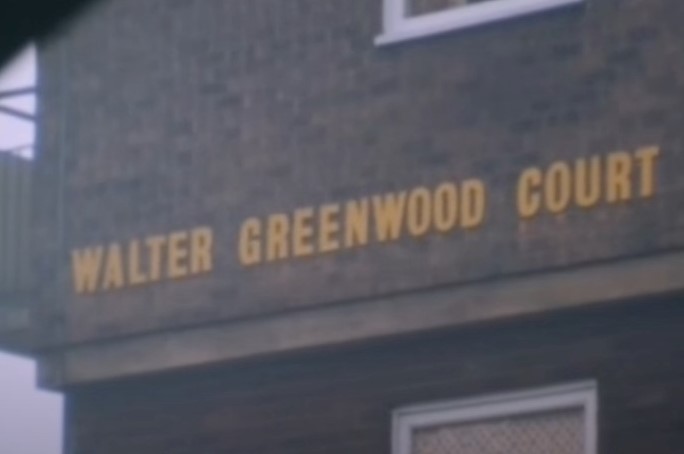A few other responses from him showing a similar ambivalence are recorded in his 1973 Kersal Flats interview. Parts of this are filmed in front of Walter Greenwood Court, and though Greenwood makes no reference to the building named after him, he does make clear that while he thinks Hanky Park had very inadequate homes, and that the welfare state had greatly improved the quality of working-class life, he thinks that there has nevertheless been a loss of community in the new Salford and links this to the new high-rises. (4) In short, while Greenwood fully saw the utter inadequacy of housing in Hanky Park and was glad to see it go, he had some doubts about the high-rise replacements, and perhaps some strictly limited nostalgia about the urban environment he grew up in.