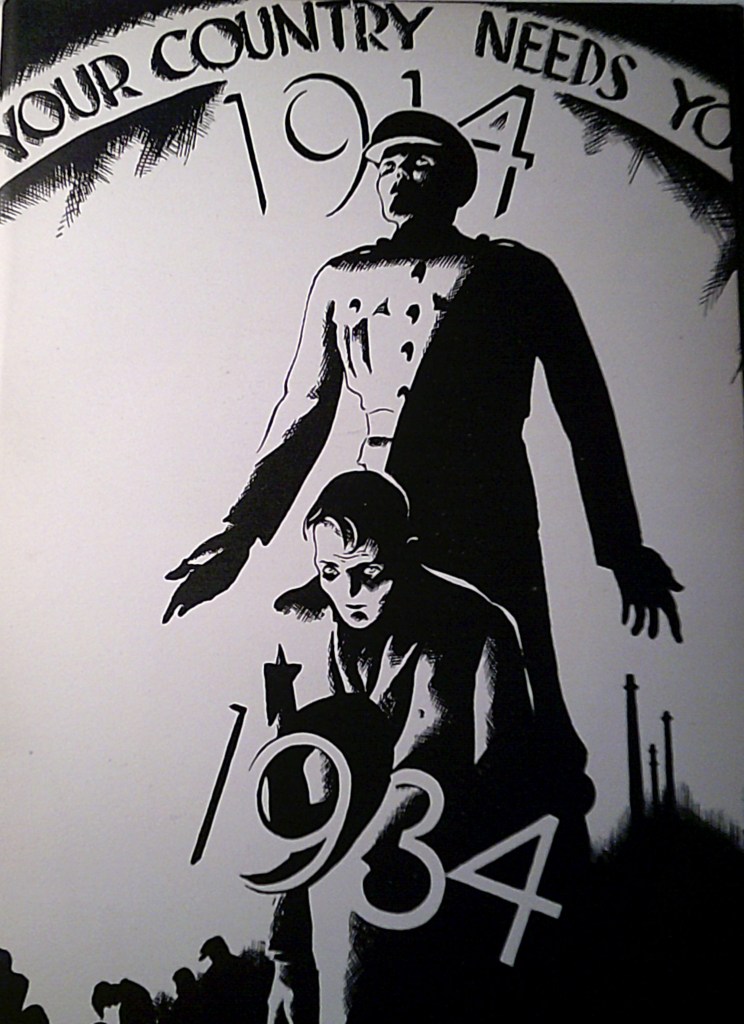 The Cleft Stick, like Love on the Dole, seems mainly set in the thirties, but it has one story among its fifteen which is set during the First World War. I have always thought this slightly jarring, since in a collection of short stories each of which contributes a snap-shot to a portrait of a contemporary Hanky Park, this one story goes back to a different time-period. That may be partly an effect of my imposing Love on the Dole’s strict time-line on the short-story collection, when it does not in fact have such an explicit temporal framework – however, the majority of the stories do seem to take place in a post-war world. The story, the third in the collection, is titled, simply, ‘Patriotism’. It opens with and indeed focusses on a very poor resident of Hanky Park – one Mrs Harrop. Some details of this quite long story – fourteen printed pages, so perhaps four times as long as ‘A Christmas Present’ – flesh out Mrs Harrop’s back-story. However, she is revealed in a very different light, or perhaps really as a completely different character. The story opens with Mrs Harrop’s reaction to a ‘coloured lithographic’ recruiting poster: