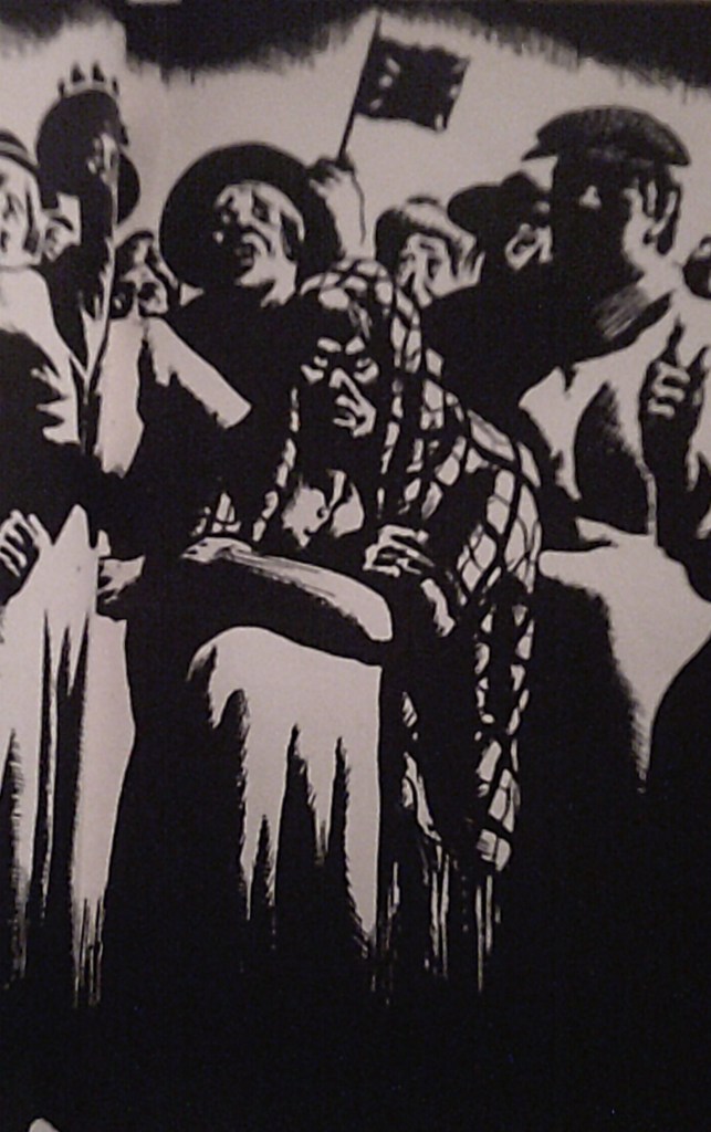 The Cleft Stick was published in mid-November 1937, so ‘A Christmas Present’ was presumably written afterwards, but clearly has a relationship to the short story collection. While Love on the Dole was specifically about the impact of the Depression, The Cleft Stick may instead, with the inclusion of a First World War story and no precise or explicit such time-frame, suggest that poverty is the long-term situation of Hanky Park, slump or not. Another reason why in ‘A Christmas Present’ Greenwood went back to Hanky Park during the First World War may be that, like all good presents, it is carefully designed for its recipient. Arthur Wragg was a prominent Christian socialist pacifist artist, as is seen in his juxtapositions of text and image in his controversial and famous first two books, The Psalms for Modern Life and Jesus Wept – A commentary in black-and-white on ourselves and the world to-day (Selwyn & Blount, London, 1934 and 1935). The images in these two books resemble the illustrations in The Cleft Stick, but are less bound by broadly realist conventions, and draw on surreality and the metaphoric. A number of the drawings suggest that Wragg would have appreciated the way in which ‘A Christmas Present’ saw links between the evils of want and war. For example, there is the image titled ‘Betrayal’ in Jesus Wept, where Wragg, like Greenwood (and Mrs Bull and Mrs Harrop), considers the famous First World War Kitchener recruiting poster, and the question of when and how your country needs you, and whether it meets your needs in return. Had Joe survived, perhaps the dole, at best, would have been his recognition in 1934.